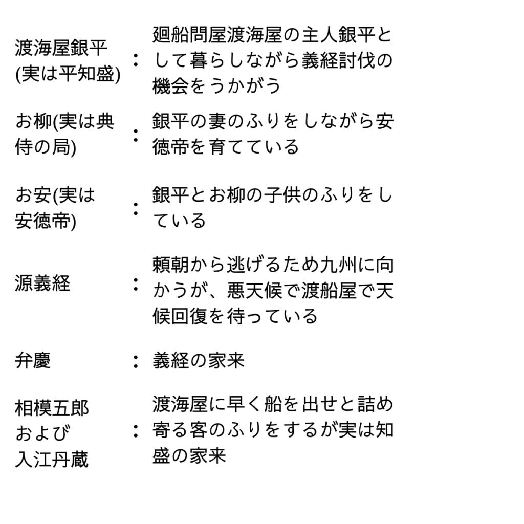 「渡海屋」と「大物浦」の主な登場人物は以下の7名です。