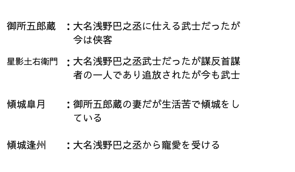 御所五郎蔵ごしょのごろぞう」の主な登場人物は以下の4名です。